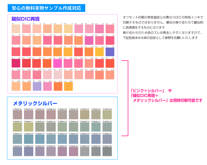 ※ DIC疑似再現はお申込時のオプションは「ピンクを追加」を選択いただくことで対応可能です