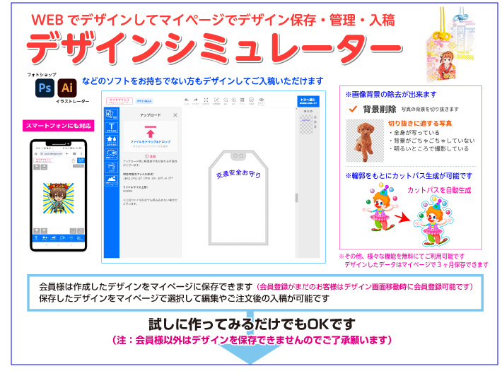 マイページでデザインの保存や編集が可能です